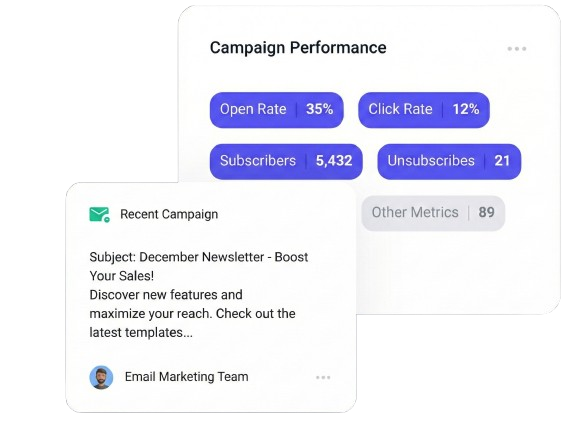 Seamlessly integrate your e-commerce store with your email campaigns. Showcase your top products, track purchase intent, and receive real-time notifications when a subscriber converts into a customer. Drive sales directly from your inbox.